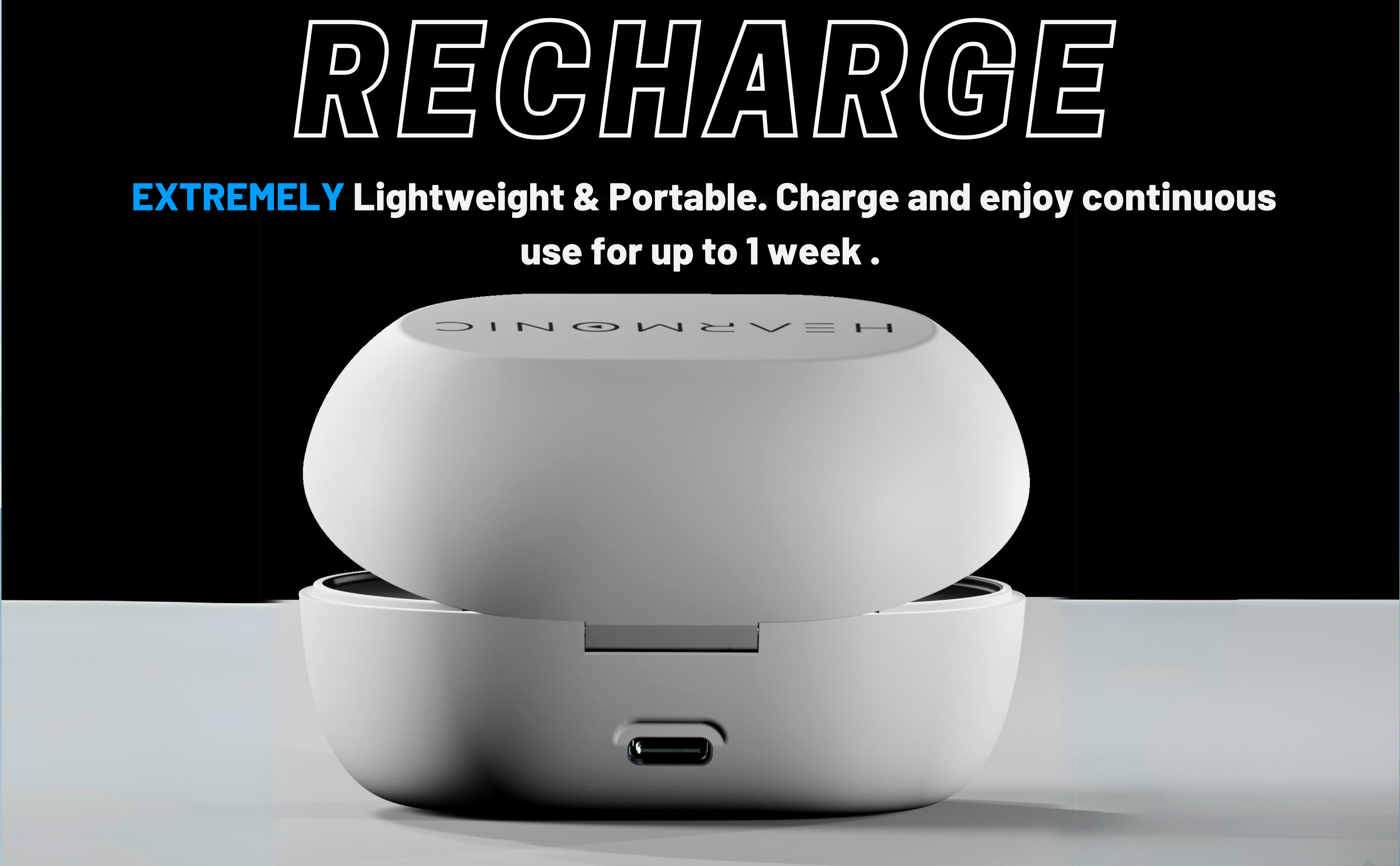 Forget battery-changing hassles forever with our advanced lithium-ion charging case. Enjoy 18 hours of use on a single charge, with the case providing 5 additional charges for 90 hours of total on-the-go power. This intelligent case doubles as a moisture-removing dryer and a convenient nightstand docking station, ensuring your Hearmonic X Pro is always dry, charged, and ready for action.